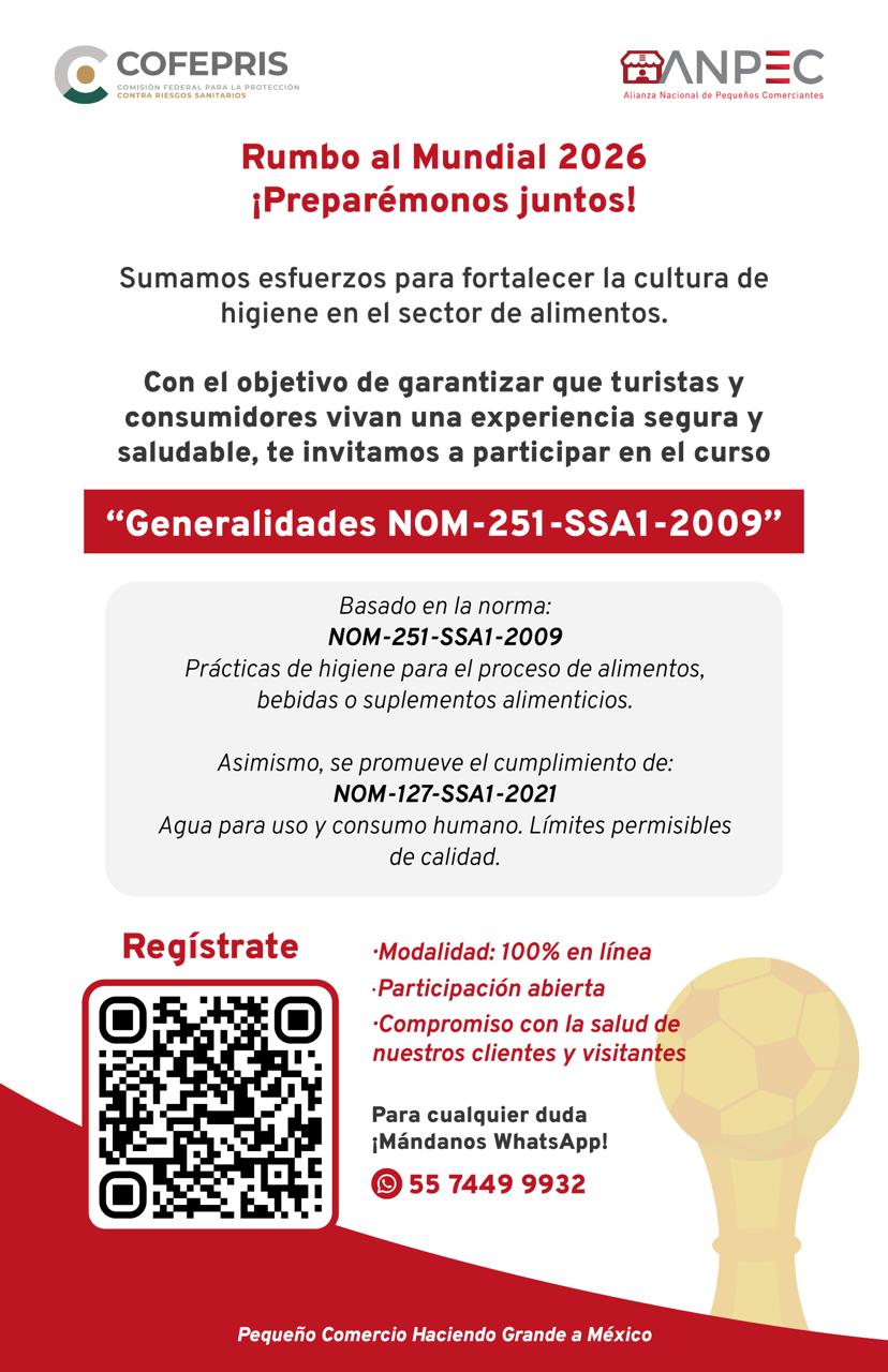 VerCon la llegada del calor, el consumo de bebidas y alimentos frescos se dispara, y con ello los riesgos sanitarios. La refrigeración no da abasto, el subsidio eléctrico se rebasa y los recibos de luz pueden duplicarse o triplicarse en el pequeño comercio. Ante este panorama, ANPEC y COFEPRIS suman esfuerzos promoviendo el curso gratuito y en línea "Generalidades NOM-251-SSA1-2009": prácticas de higiene en la elaboración de alimentos, bebidas y suplementos, así como el cumplimiento de la NOM-127-SSA1-2021 en calidad del agua. El Mundial 2026 es la coyuntura ideal: México recibirá a más de 5 millones de visitantes. La oportunidad no es solo económica, es de imagen. El mensaje es uno: México es un país higiénico. El compromiso de ANPEC con la higiene va más allá del torneo. Cuidar la salud de los clientes no es solo una obligación, es una ventaja competitiva para el pequeño comercio.